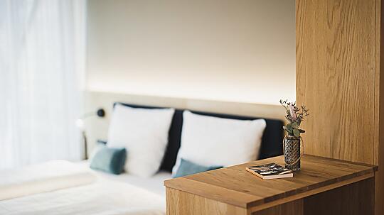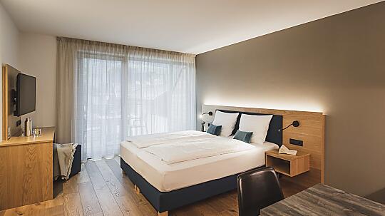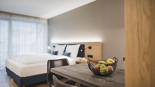 Modern-gemütlich begrüßt euch unser klassisches Studio. Hier erwarten euch dezente Farben, viel Holz und ein sonniger Balkon mit Esstisch. Perfekt für 2!
