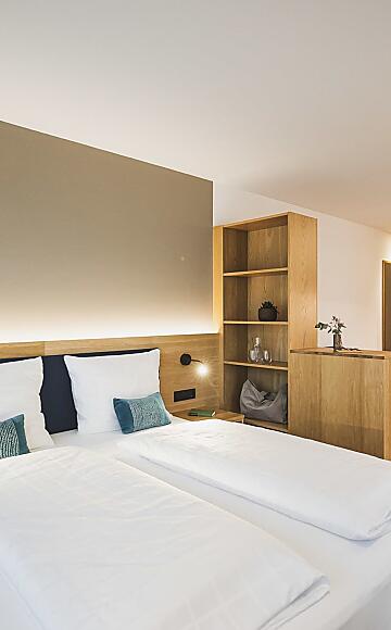 Il nome del Garden Studio parla da sé. Qui avete accesso al vostro piccolo giardino privato con sdraio, ombrelloni, tavolo e pouf. All'interno vi aspetta un elegante pavimento in legno e una zona giorno con divano letto.